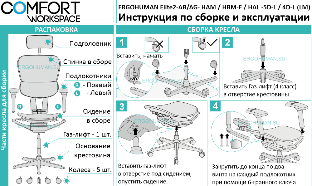 - Код товара: ERGOHUMAN 2 ELITE LUX (EHE2-AB-HAL-5D-L)